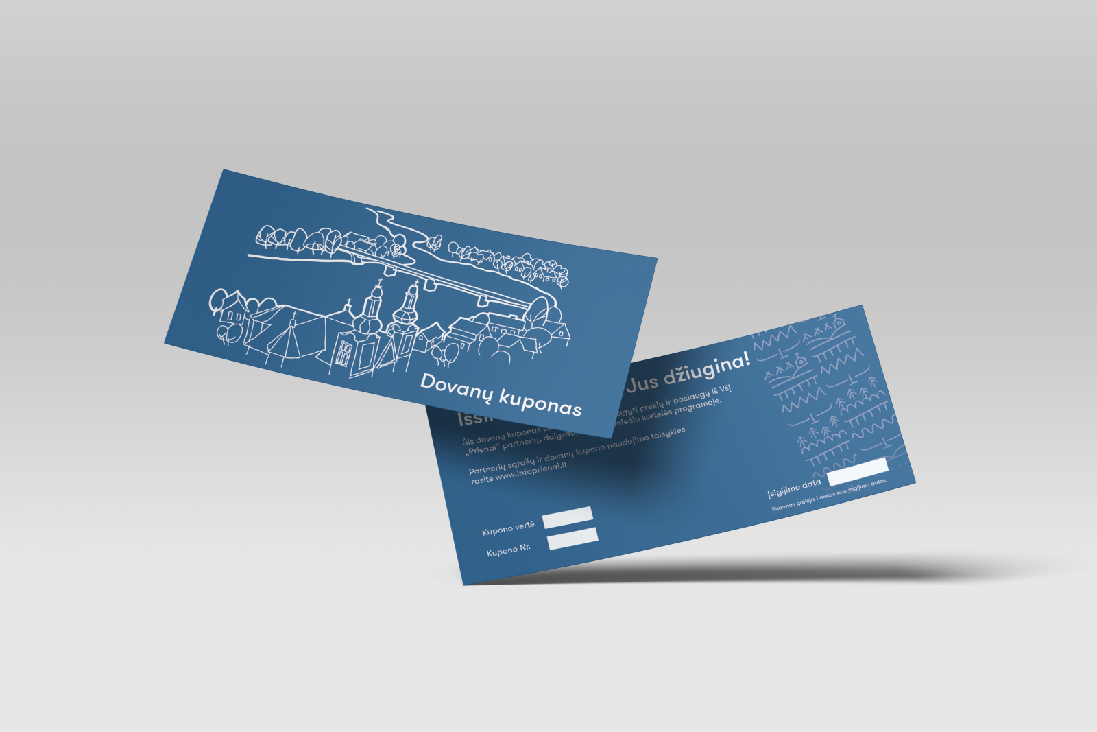 Dovanų kuponas – išskirtinė dovana, kuri nudžiugins kiekvieną! Dovanų kuponą galima įsigyti tik pas mus, Prienų turizmo ir verslo informacijos centre, adresu Vytauto g. 35, Prienai. Dovanų kupono vertė gali būti 10.00, 20.00, 30.00, 50.00 arba 100.00 Eur.