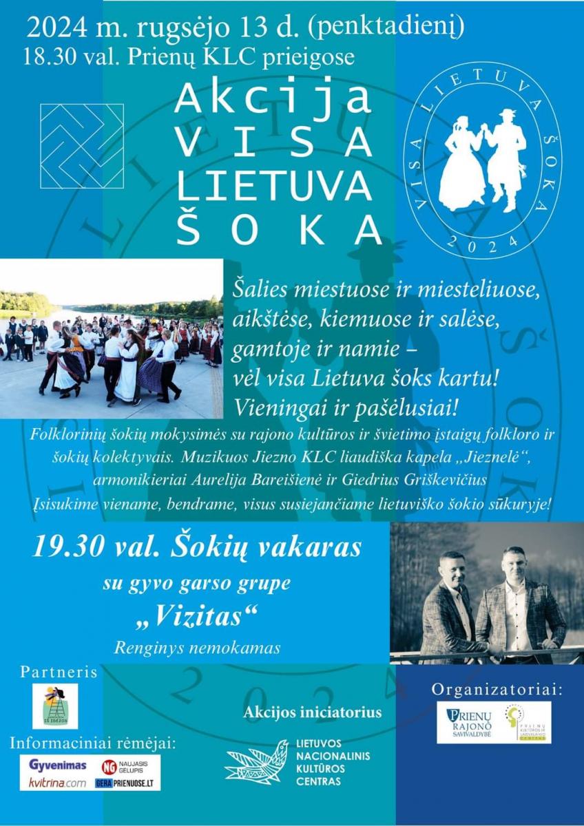 Rugsėjo 13 d. 18.30 val. Prienų kultūros ir laisvalaikio centro prieigose – Etninės kultūros akcija „Visa Lietuva šoka“