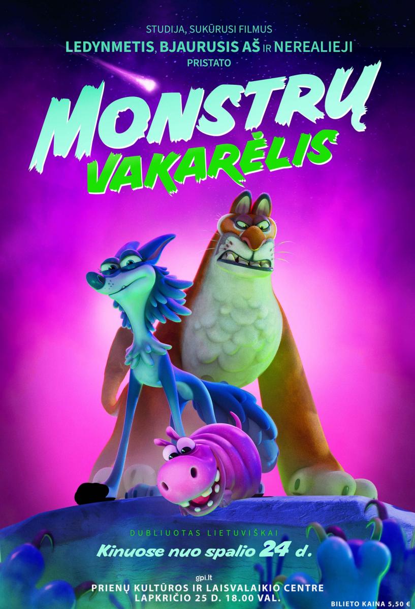 Lapkričio 25 d. 18.00 val. Prienų kultūros ir laisvalaikio centre – animacinis kino filmas visai šeimai „Monstrų vakarėlis“. Visiškai nebaisi, bet labai smagi ir nuotaikinga animacinė komedija apie draugystę, drąsą ir tai, kaip muzika gali išgelbėti pasaulį.