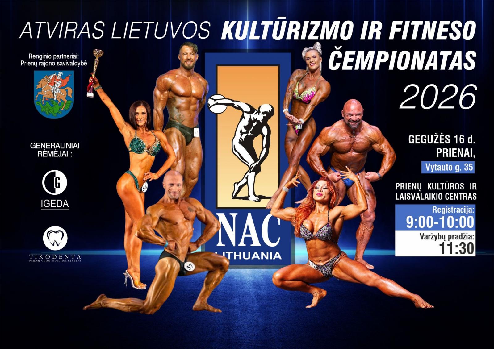 Gegužės 16 d. Prienų kultūros ir laisvalaikio centre – Atviras Lietuvos kultūrizmo ir fitneso čempionatas 2026. Scenoje išvysite sportininkus, įspūdingas fizines formas, ryžtą ir discipliną. Varžybų pradžia – 11.30 val. Nepraleiskite šio įspūdingo renginio. Renginys nemokamas.