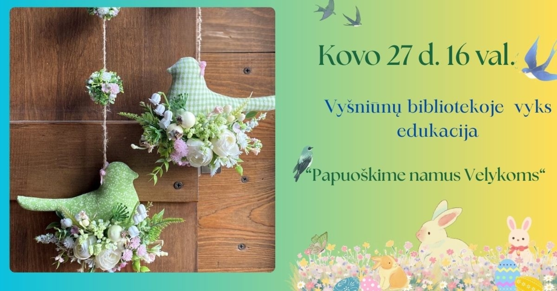 Kovo 27 d. 16.00 val. Vyšniūnų bibliotekoje – edukacija „Papuoškime namus Velykoms“.