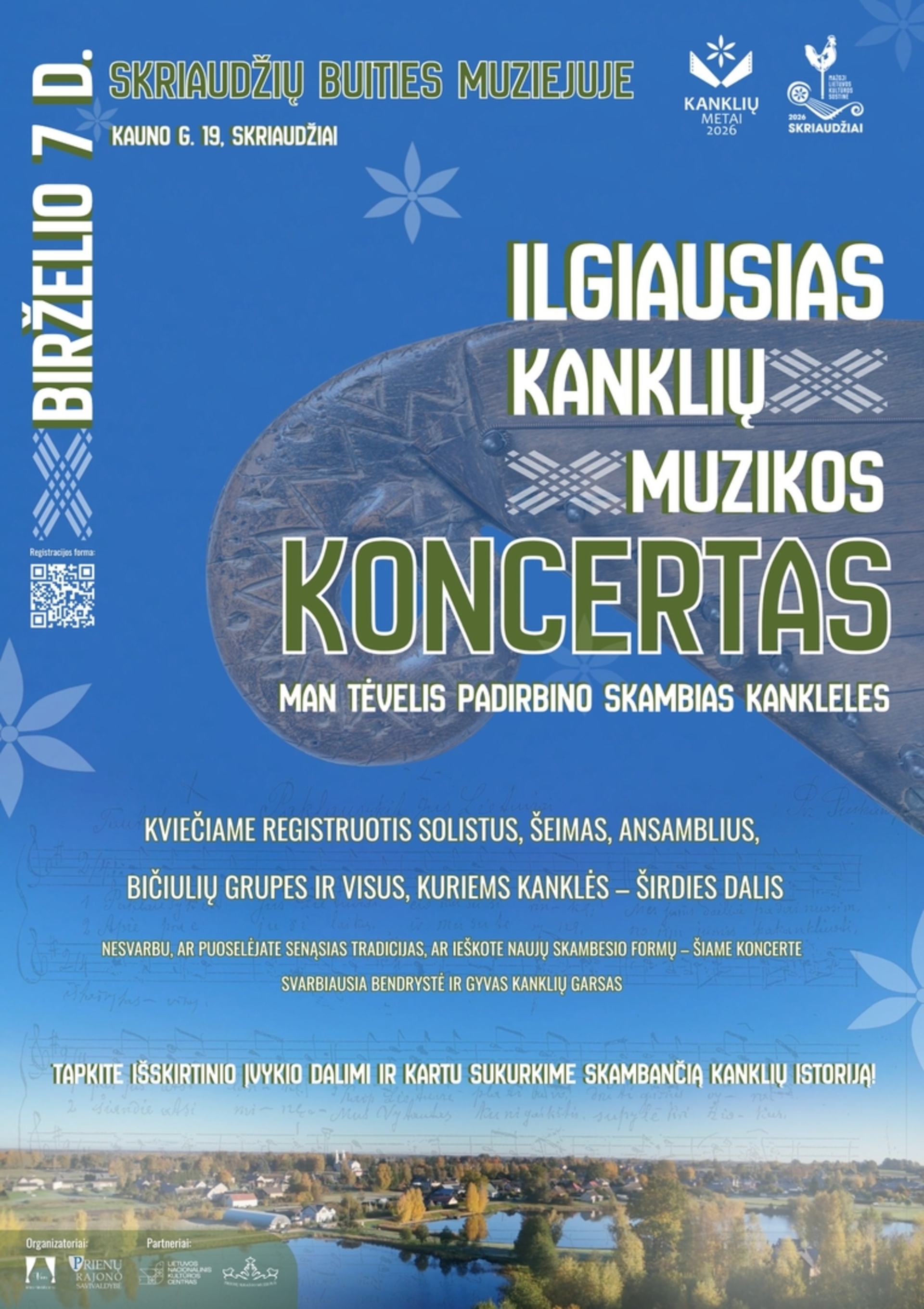 Maloniai kviečiame solistus, ansamblius, kolektyvus ir visus kanklių muzikos puoselėtojus dalyvauti išskirtiniame renginyje – ilgiausiame kanklių muzikos koncerte „Man tėvelis padirbino skambias kankleles“, kuris vyks birželio 7 d. (sekmadienį) nuo 10 val. Skriaudžių buities muziejuje (Kauno g. 19, Skriaudžiai, Prienų r.).