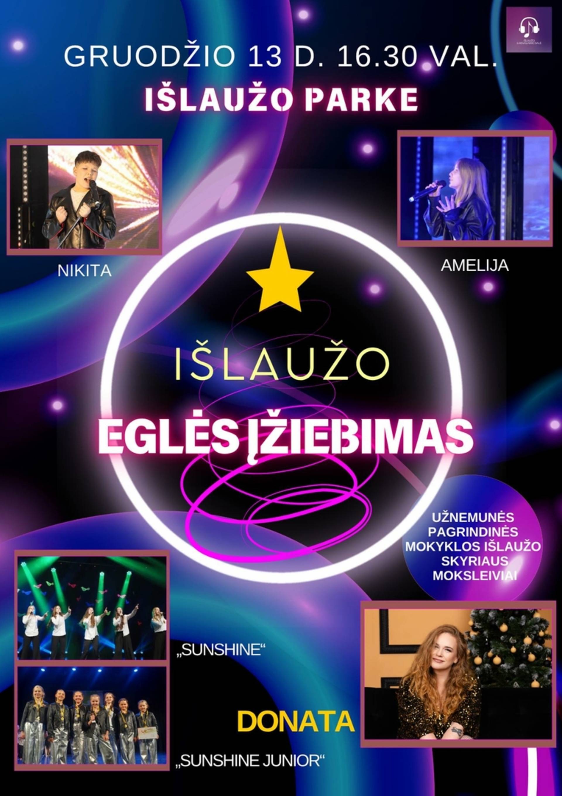 Gruodžio 13 d. 16.30 val. Išlaužo parke – Išlaužo Kalėdų eglės įžiebimo šventė. Jūsų laukia įvairūs siurprizai, talentingi jaunimo atlikėjai: Nikita, Amelija, „Sunshine“, „Sunshine junior“, Užnemunės pagrindinės mokyklos Išlaužo skyriaus moksleiviai. Vakaro nuotaiką garantuos atlikėja Donata Virbilaitė.