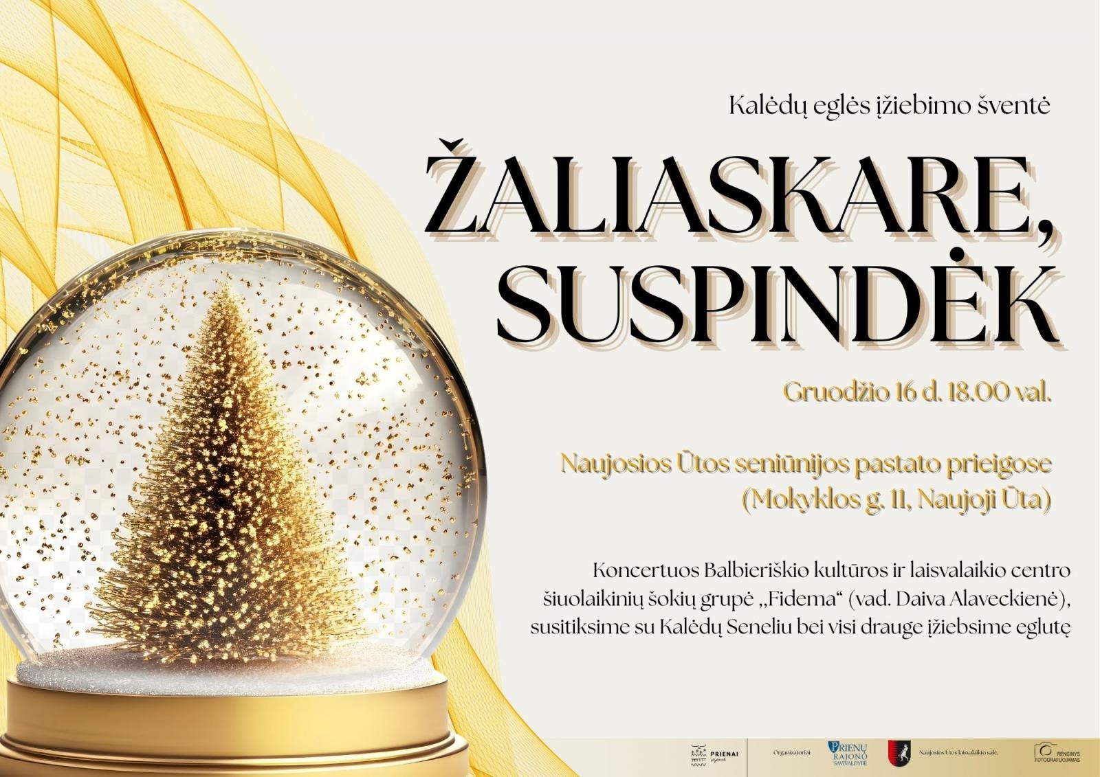 Gruodžio 16 d. 18.00 val. Naujosios Ūtos seniūnijos pastato prieigose – Kalėdų eglės įžiebimo šventė „Žaliaskare, suspindėk“. Koncertuos jaunimo šokių grupė „Fidema“, susitiksime su Kalėdų seneliu, drauge įžiebsime eglutę. Jūsų laukia šokiai, žaidimai ir siurprizai.