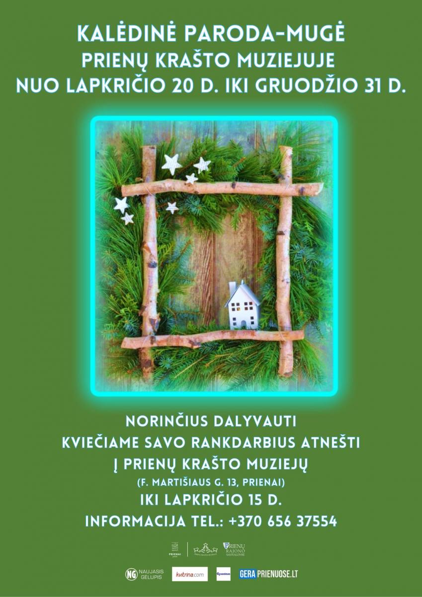 Nuo lapkričio 20 d. iki gruodžio 31 d. Prienų krašto muziejuje vyks Kalėdinė paroda-mugė. Norinčius dalyvauti kviečiame savo rankdarbius atnešti į Prienų krašto muziejų iki lapkričio 15 d. Daugiau informacijos tel. +370 656 37554.