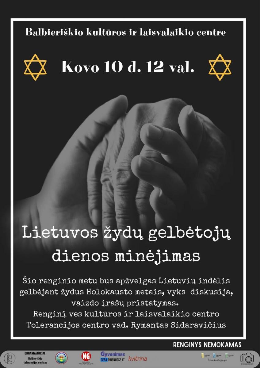 Kovo 10 d. 12.00 val. Balbieriškio kultūros ir laisvalaikio centre – Lietuvos žydų gelbėtojų dienos minėjimas. Renginio metu bus apžvelgtas lietuvių indėlis gelbstint žydus Holokausto metais, vyks diskusija ir vaizdo įrašų pristatymas. Renginį ves Tolerancijos ugdymo centro vadovas Vitas Rymantas Sidaravičius.