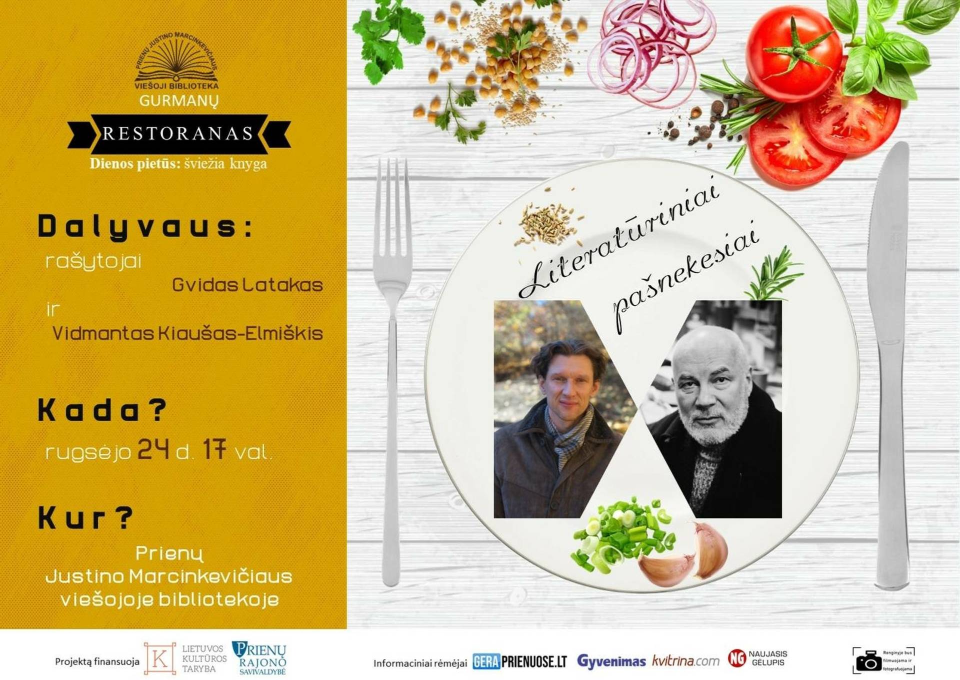 Renginys organizuojamas įgyvendinant projektą „Gurmanų restoranas. Dienos pietūs: Šviežia knyga“ (V). Projektą finansuoja Lietuvos kultūros taryba ir Prienų rajono savivaldybė.