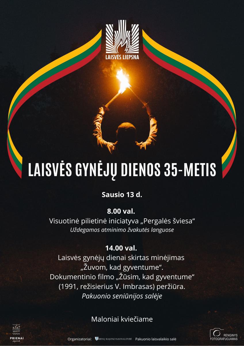 Sausio 13 d. 14.00 val. Pakuonio seniūnijos salėje – minėjimas „Žuvom, kad gyventume“. Dokumentinio filmo „Žūsim, kad gyventume“ (1991, režisierius V. Imbrasas) peržiūra.