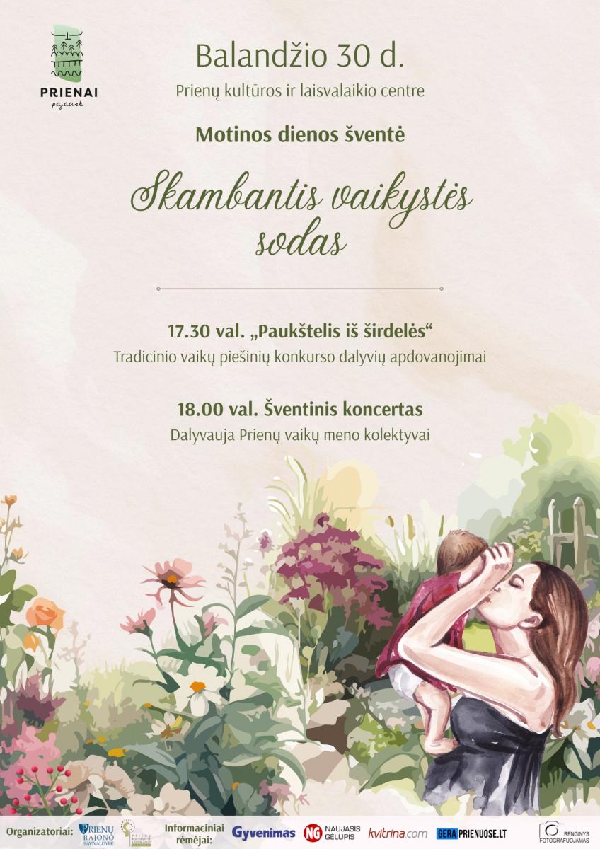 Balandžio 30 d. Prienų kultūros ir laisvalaikio centre – Motinos dienos šventė „Skambantis vaikystės sodas“.