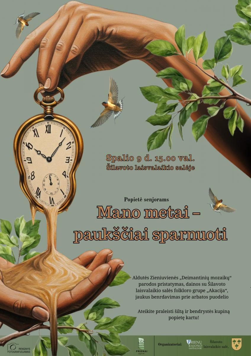 Spalio 9 d. 15.00 val. Šilavoto laisvalaikio salėje – popietė senjorams „Mano metai – paukščiai sparnuoti“. Aldutės Zieniuvienės „Deimantinių mozaikų“ parodos pristatymas, dainos su Šilavoto laisvalaikio salės folkloro grupe „Akacija“, jaukus bendravimas prie arbatos puodelio.