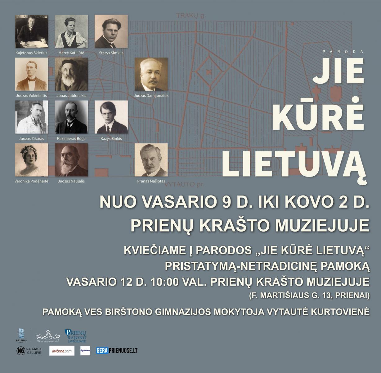 Vasario 12 d. 10.00 val. Prienų krašto muziejuje – parodos „Jie kūrė Lietuvą…“ pristatymas-netradicinė pamoka, kurią ves Birštono gimnazijos mokytoja Vytautė Kurtovienė.