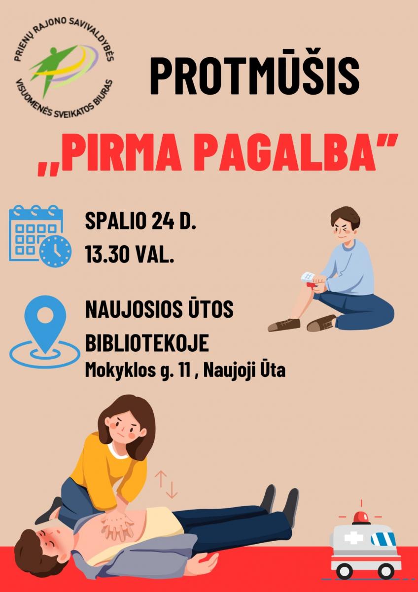 Spalio 24 d. 13.30 val. Naujosios Ūtos bibliotekoje – protmūšis „Pirma pagalba“.