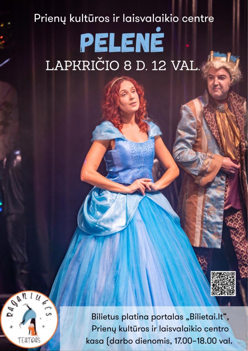 Lapkričio 8 d. 12.00 val. Prienų kultūros ir laisvalaikio centre – Raganiukės teatro muzikinis spektaklis vaikams „Pelenė“.