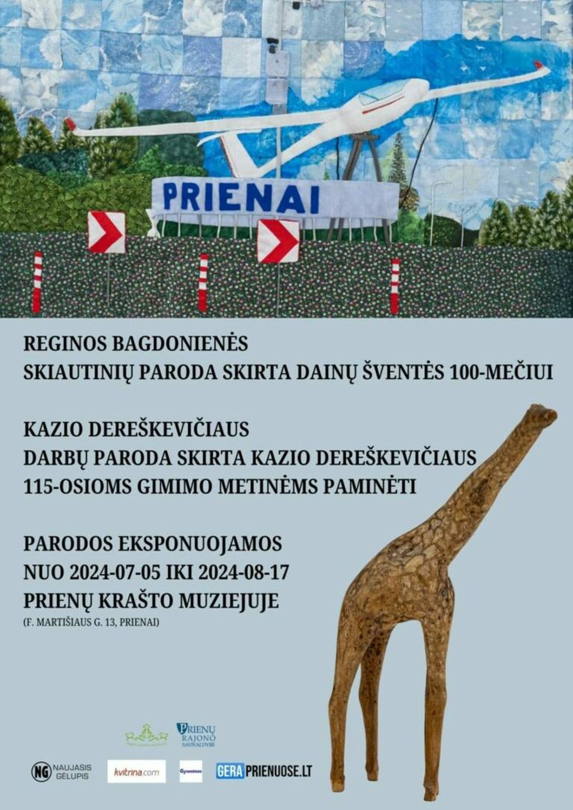 Prienų krašto muziejuje nuo liepos 5 d. – rugpjūčio 17 d. eksponuojama Reginos Bagdonienės skiautinių paroda, skirta Dainų šventės 100-mečiui ir Kazio Dereškevičiaus darbų paroda, skirta Kazio Dereškevičiaus 115-osioms gimimo metinėms paminėti.