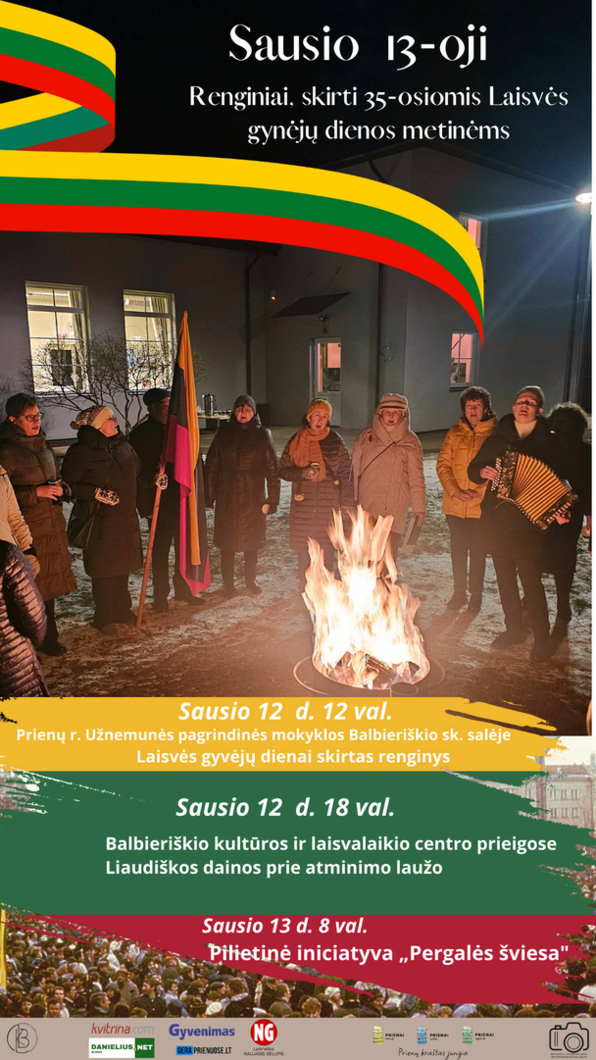 18.00 val. Balbieriškio kultūros ir laisvalaikio centro prieigose – Laisvės gynėjų dienos minėjimas. Liaudiškos dainos prie atminimo laužo.