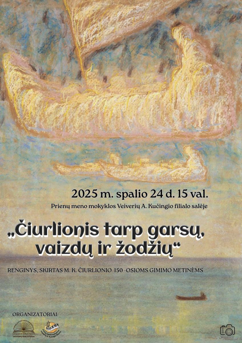 Spalio 24 d. 15.00 val. Prienų meno mokyklos Veiverių A. Kučingio filialo salėje – renginys „Čiurlionis tarp garsų, vaizdų ir žodžių“, skirtas M. K. Čiurlionio 150-osioms gimimo metinėms.