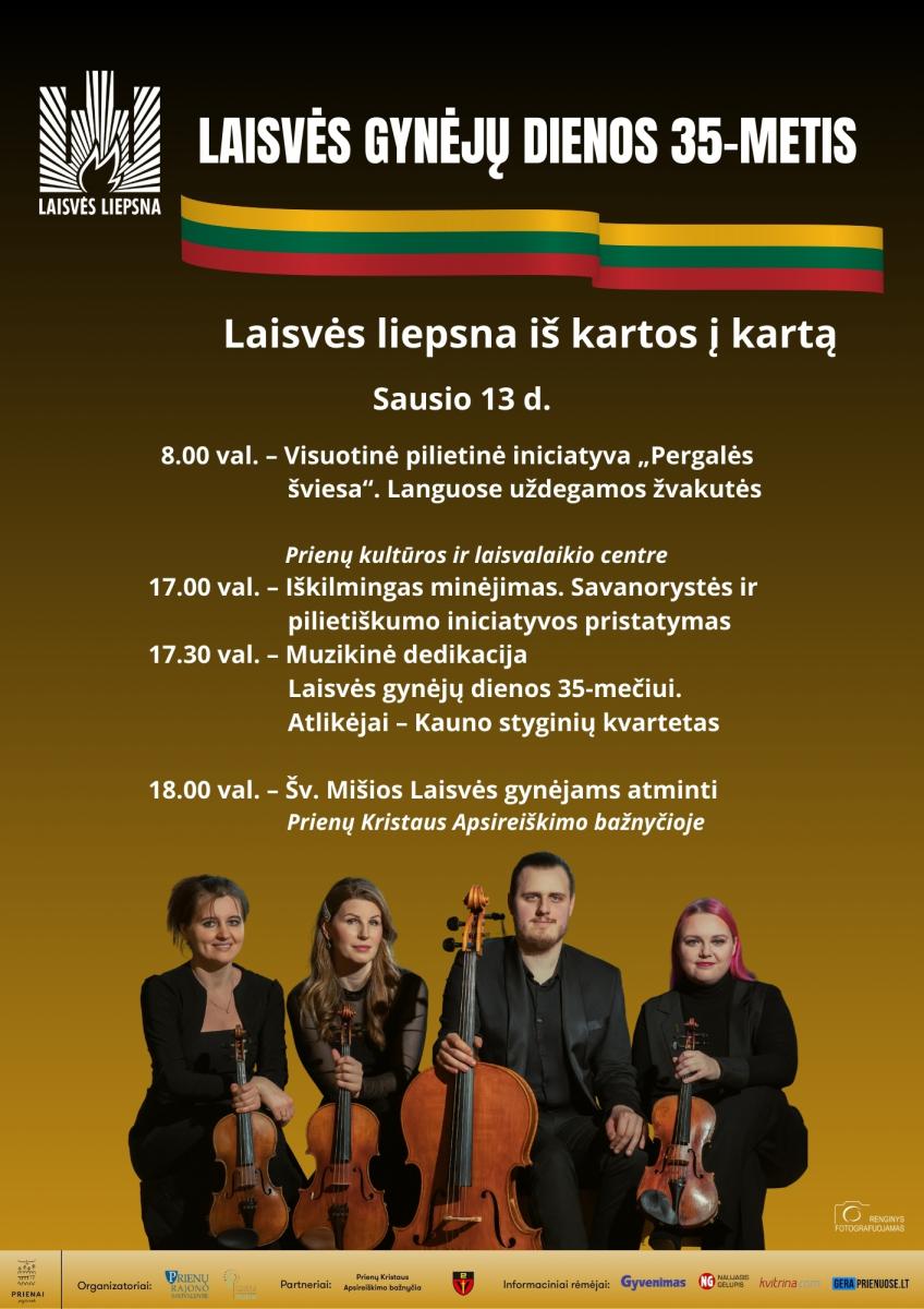 17.30 val. Muzikinė dedikacija Laisvės gynėjų dienos 35-mečiui. Atlikėjai – Kauno styginių kvartetas (meno vadovė Karolina Beinarytė-Palekauskienė).