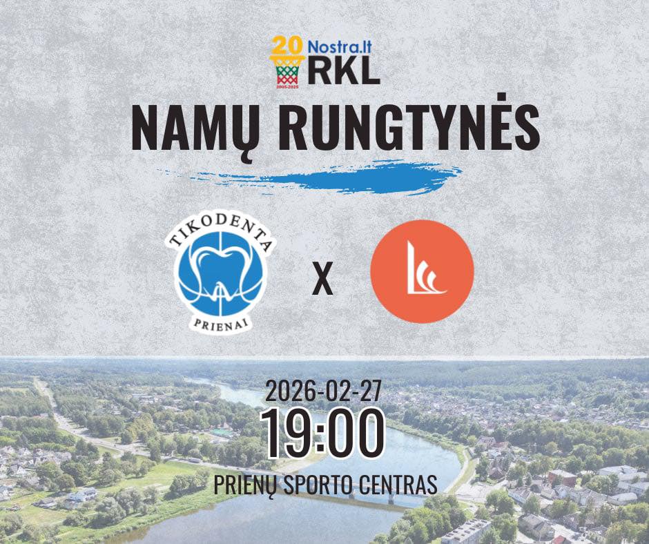 Vasario 27 d. 19.00 val. Prienų sporto arenoje – RKL krepšinio rungtynės: Prienų „Tikodenta“ – „LSS Tarptautinis universitetas“.