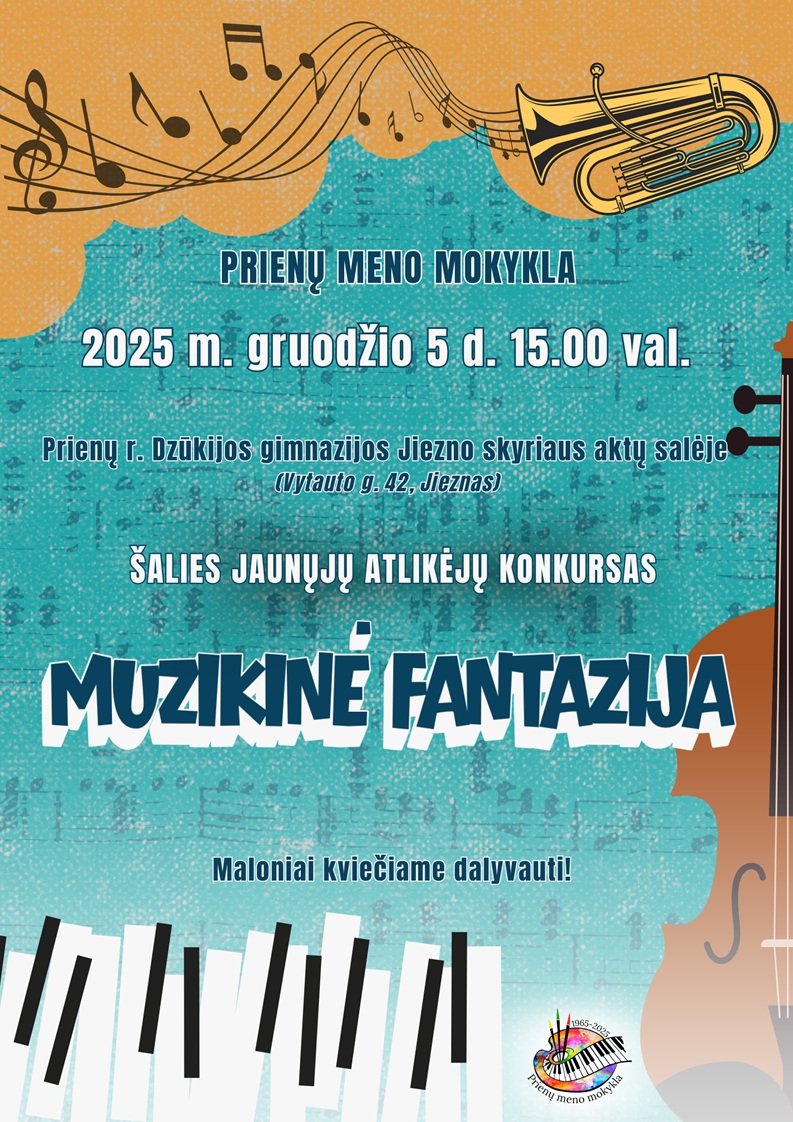 Gruodžio 5 d. 15.00 val. Prienų r. Dzūkijos gimnazijos Jiezno skyriaus aktų salėje (Vytauto g. 42, Jieznas) – Šalies jaunųjų atlikėjų konkursas „Muzikinė fantazija“. Maloniai kviečiame.