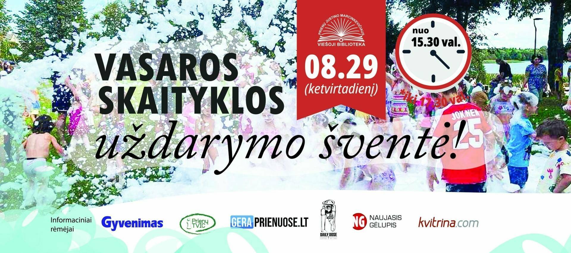 „Vasaros skaityklos“ uždarymo šventė rugpjūčio 29 d. nuo 15.30 val. iki 17.30 val. Prienų Justino Marcinkevičiaus viešosios bibliotekos kiemelyje.