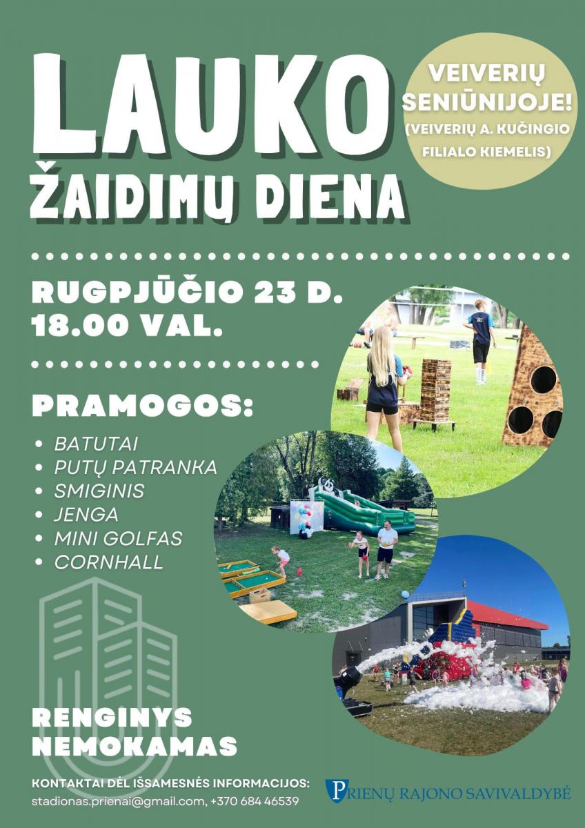 Nuo 18.00 val. – Veiverių A. Kučingio filialo kiemelyje – Lauko žaidimų diena.